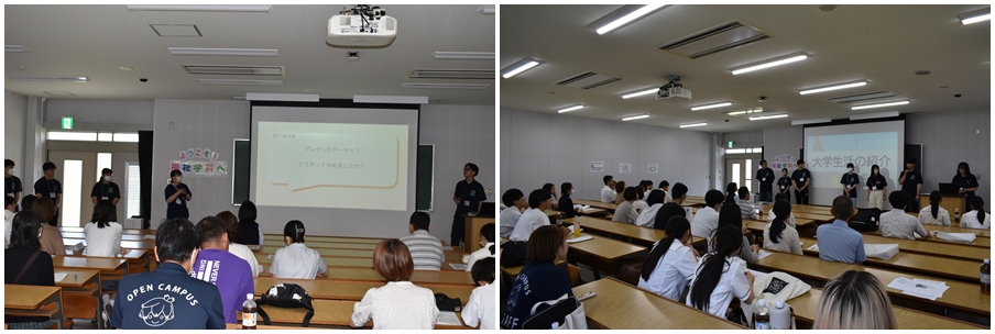 (左) 大学生が語る「入学試験の乗り越え方」 (右) 学生が語る「大学生活の紹介」