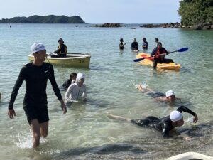 臨海実習(遠泳)が8月7日から9日にかけて、島根県松江市美保関町の北浦海岸で行われました。