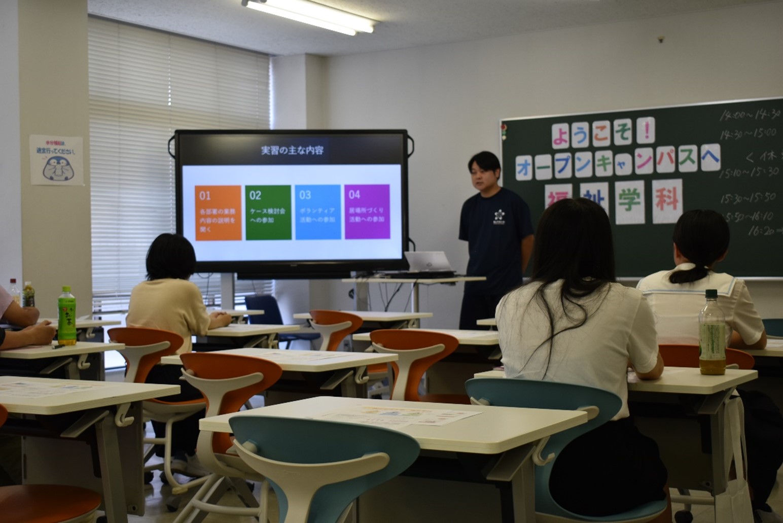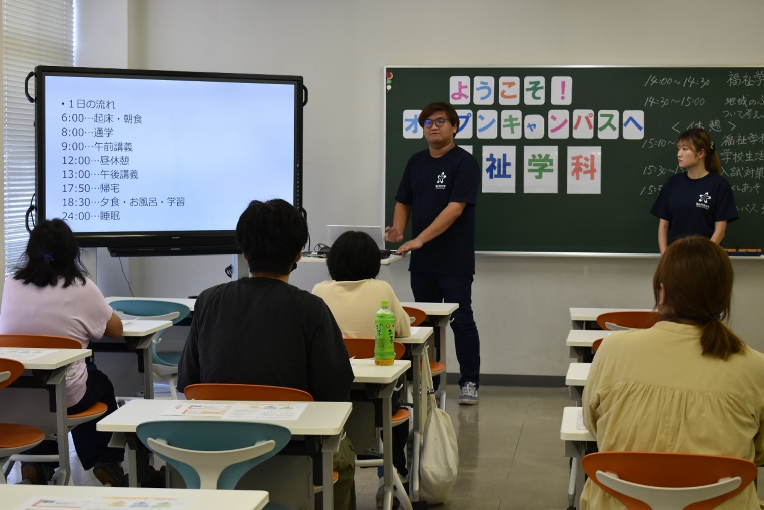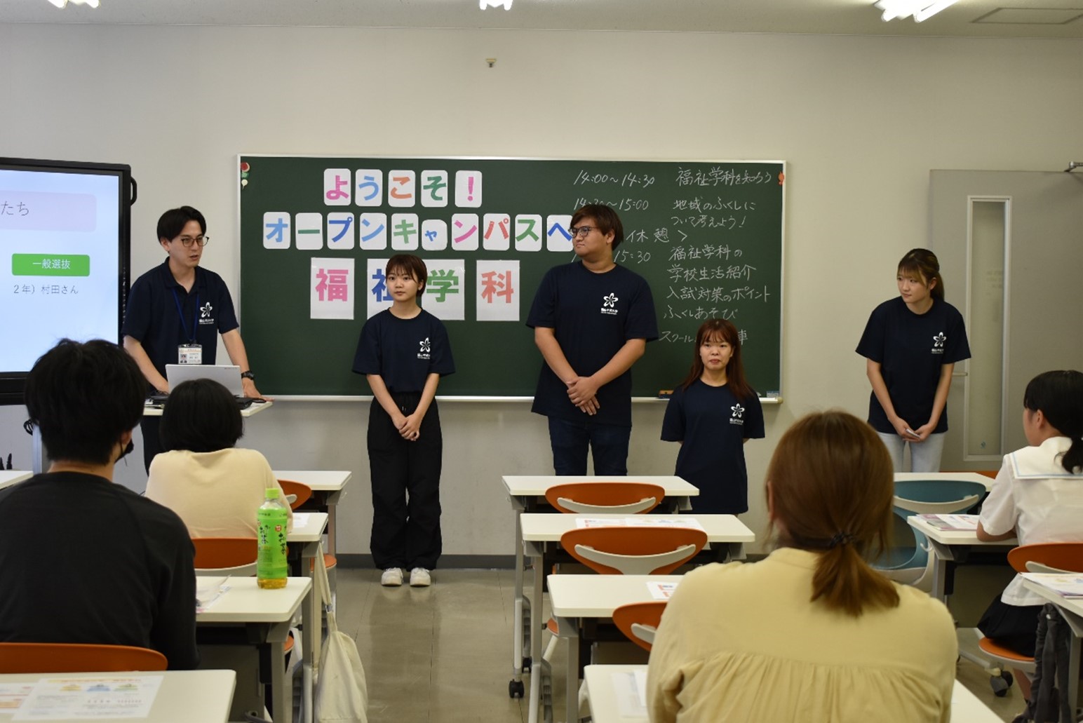 今回も、福祉学科の学生がプレゼンテーションをする機会が多くあり、大学生活の様子や入試対策のポイントなど、福祉学科での大学生活のイメージがぐっと広がったのではないでしょうか。