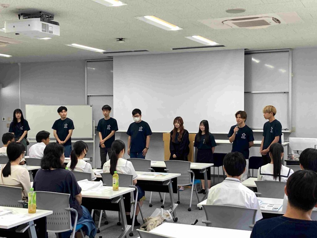 ミニ講義のあと、フリートークで在学生と高校生の交流の時間をとりました。在学生がキャンパスライフについて話しているのを、高校生が興味深く聞いていました。