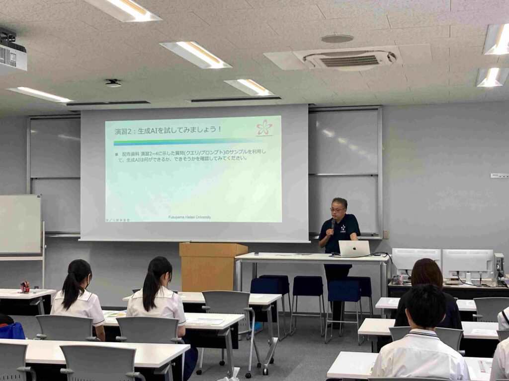 後半では、松葉教授によるミニ講義「生成AIをつかってみようーググるからジピるへ」が開講されました。このミニ講義では、生成AIを実際に使ってどのようなことができるのか実際に実演されました。