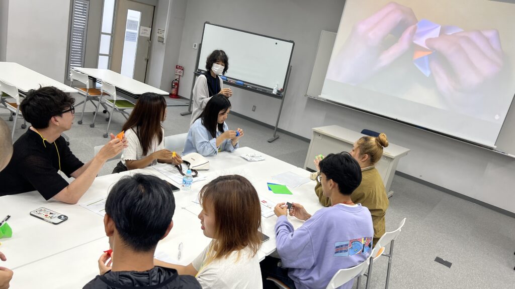 模擬授業では、折り紙を使って原価計算を学びました。