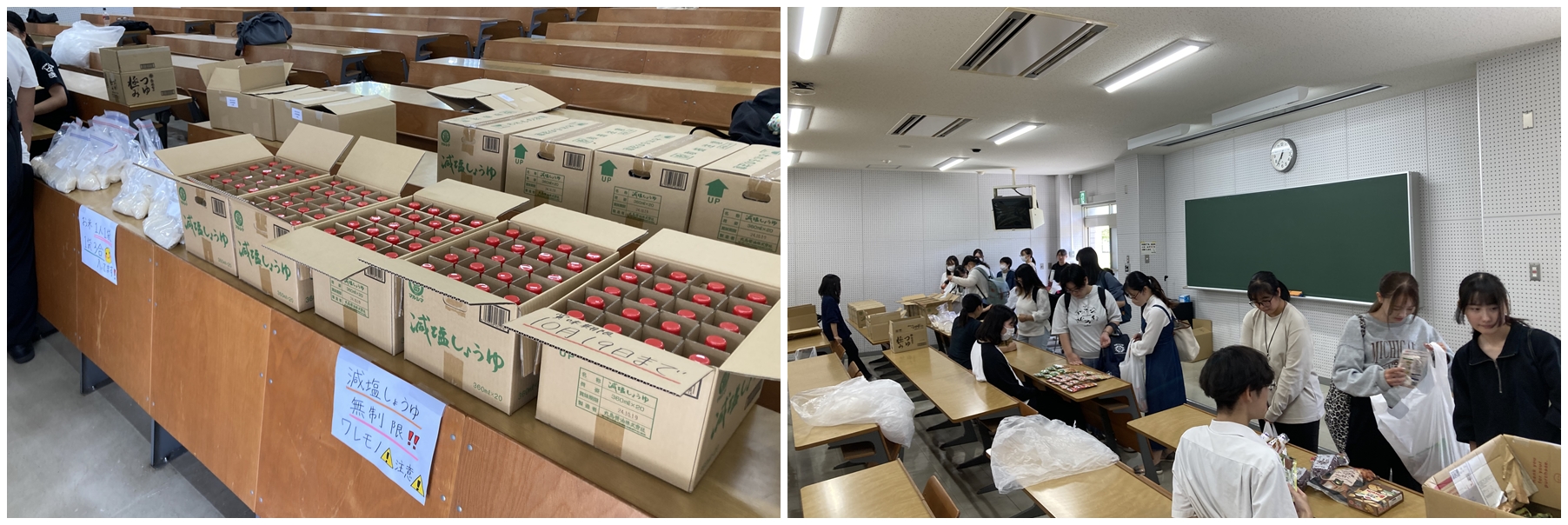 会場には学生だけでなく教職員にもご来場いただき、52名の方に食料品を受け取っていただきました。