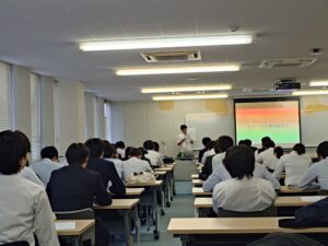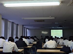 この講話を終えて学生たちからは、「学校現場の話を聞くことができてよかった」「ICTを活用した授業について、いろんなアプリや方法があることがわかってよかった」というコメントが寄せられました。