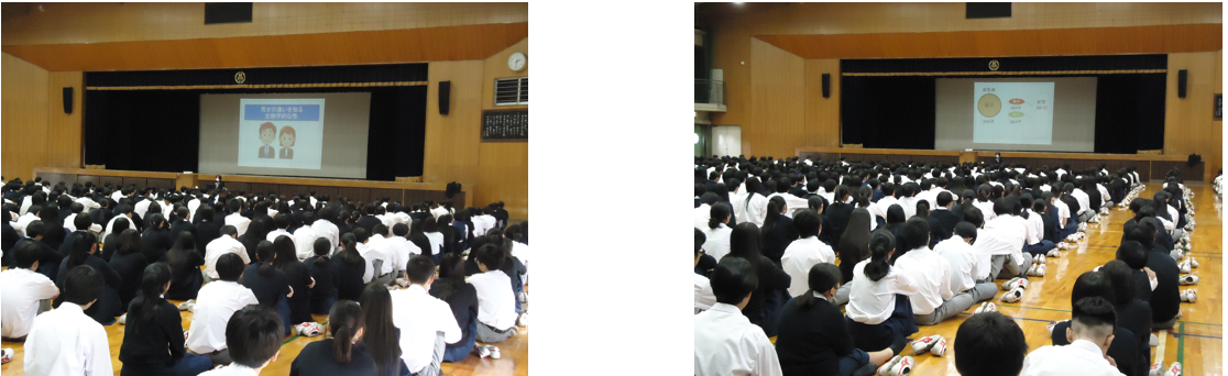 10月24日(木)広島県立明王台高等学校で看護学科の岡教授が「性教育は生教育」というテーマで講演を行いました。内容は ①男女の違いを知る(生物学的)②妊娠の成立と経過を知る。③性感染症について。④自分の生き方を考えるで、1年生~3年生800人が真剣に聞いてくださいました。講演後の感想は、自分の体や命を大切にしたい。お母さんに感謝したい。友達の命も大切にしたいなどがありました。