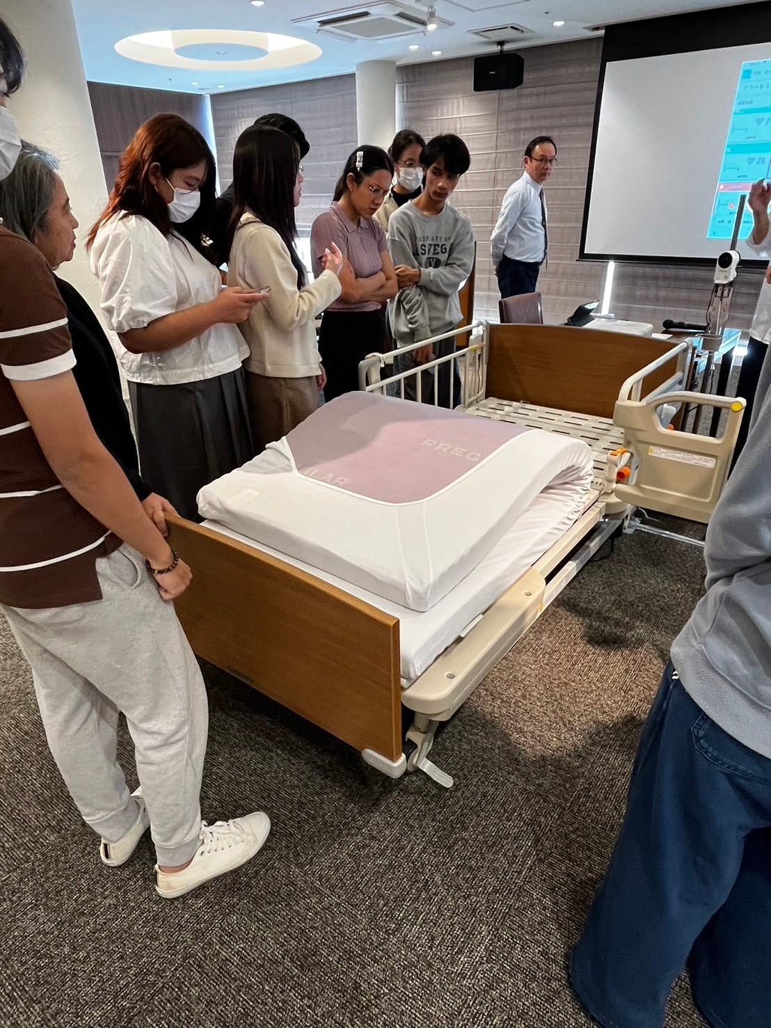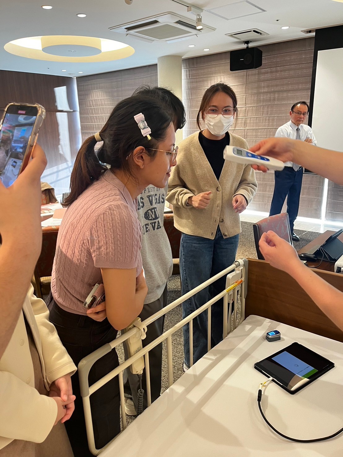 そして昼食後、『社会福祉法人 尾道さつき会』にお伺いし、平石 朗理事長から法人の沿革や事業の説明を受けました。その後、特別養護老人ホーム星の里の施設内見学に加え、貴施設が取り入れているICT(眠りSCAN、デジタルカルテ等)について、学んだり、触れたりしていただく時間を設けました。