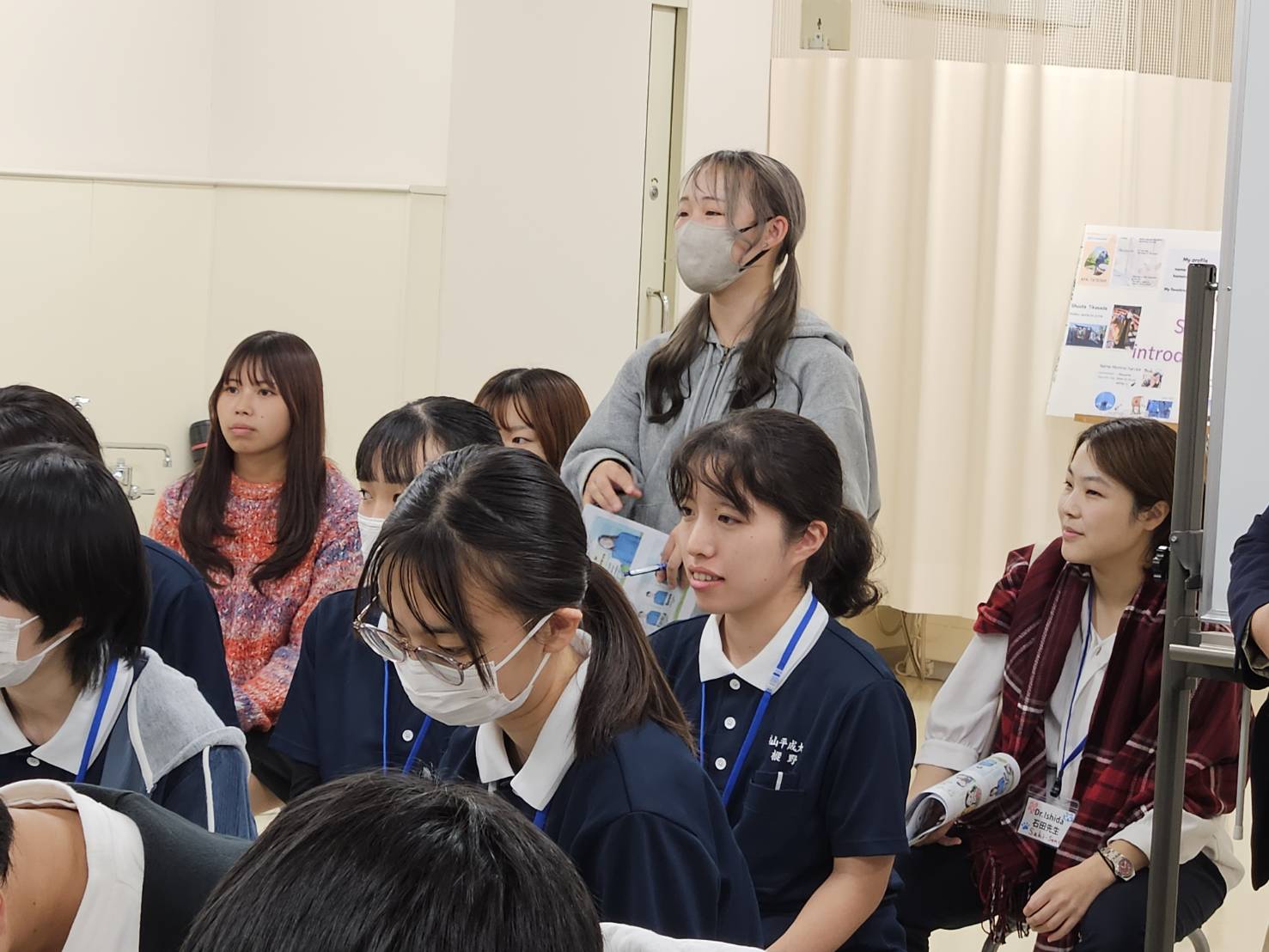 日本とは異なるタイの取組みに、質疑応答の時間では、「高齢者に支給されるお金が1か月で2700円とのことでしたが、タイでは1か月どのくらいの金額で生活できますか?」「アプリを活用して患者の医療情報が送られるとのことでしたが、どのくらいの人口をカバーしていますか?」と日本人の学生から多くの質問が寄せられました。