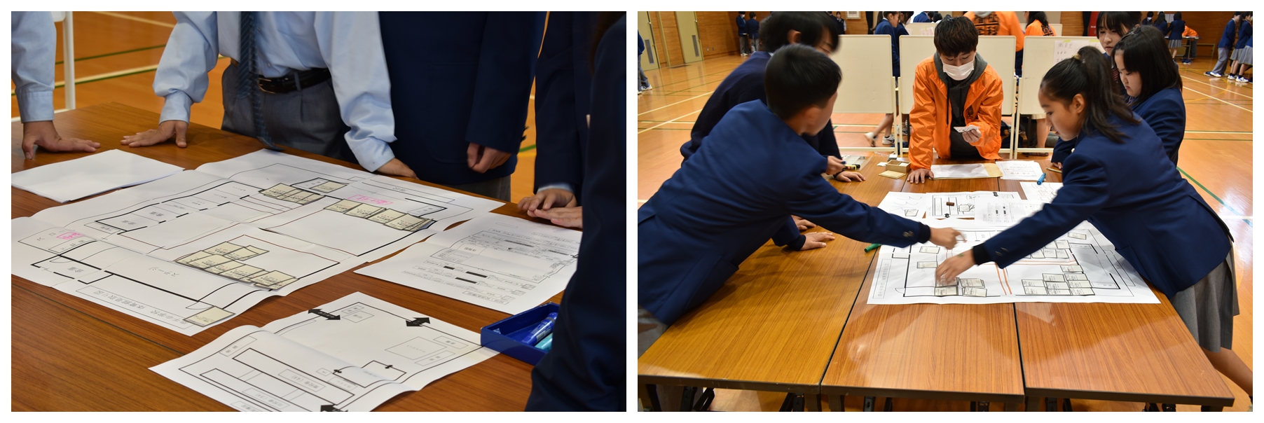 参加した生徒たちは「ペット連れはペット用の部屋を用意する?」「えートイレどうする?」など、試行錯誤しながら、グループで解決策を話し合い、避難所運営から災害福祉を学んでいただきました。