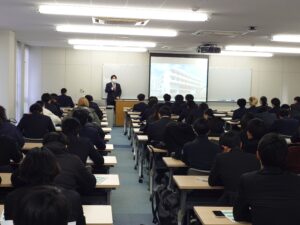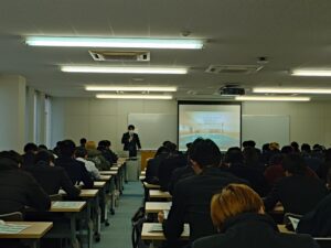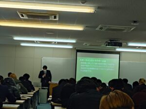 スポーツ企業情報演習で卒業生による講話の第3回目が12月11日(水)に行われ、東さん(健スポ15期生:スポーツインストラクター)にご登壇いただきました。