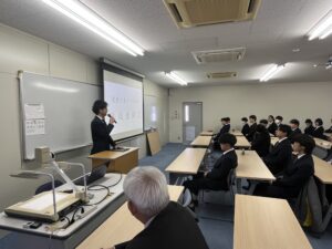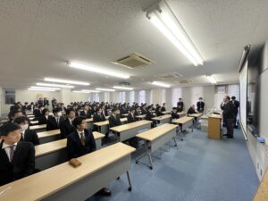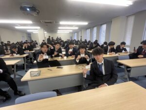 1月29日は学科での就職出陣式が行なわました。3年生が一堂に会し、石橋学科長をはじめ、各先生方からエールをもらいました。