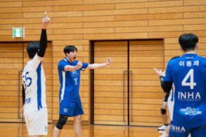 男子バレーボール部が韓国チームとの国際フレンドリーマッチを行いました。(その1)