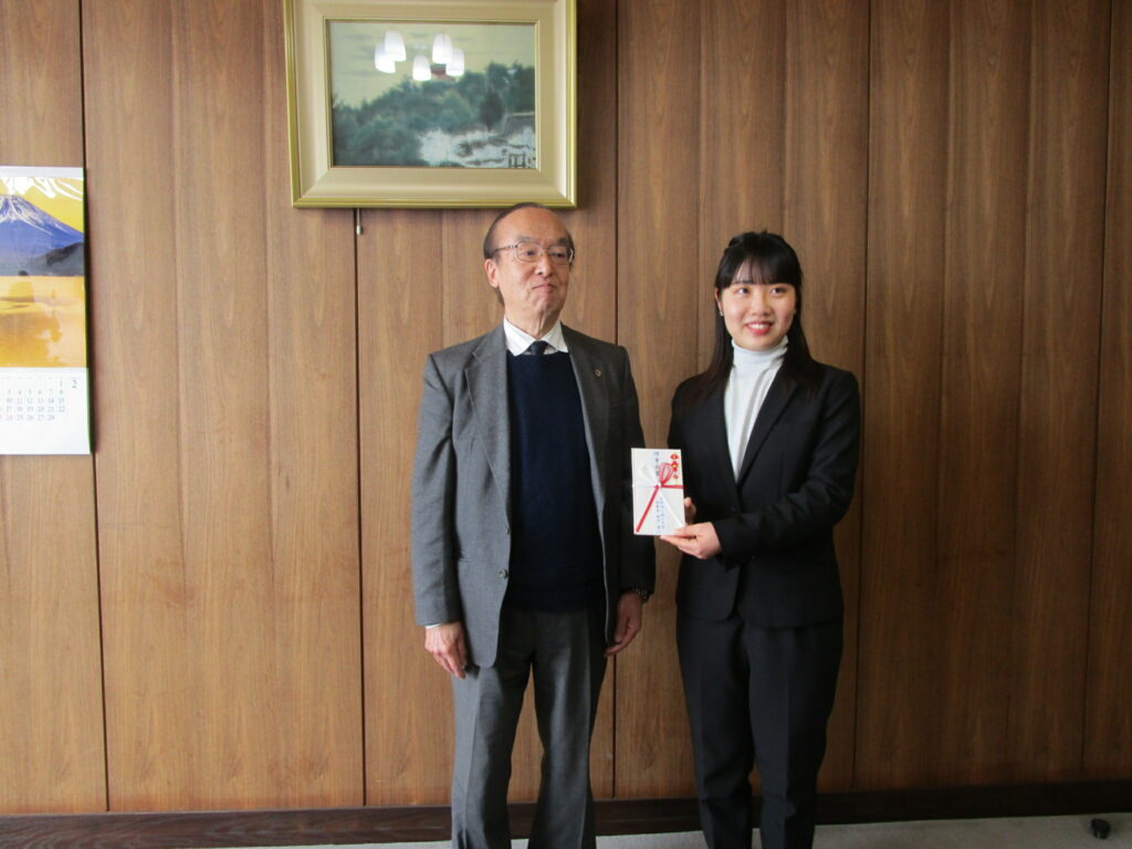 一人は3年生の牧本さん。学生アンバサダーとして中国新聞やインスタグラムでの本学広報の活躍が評価され、理事長賞を受賞しました。