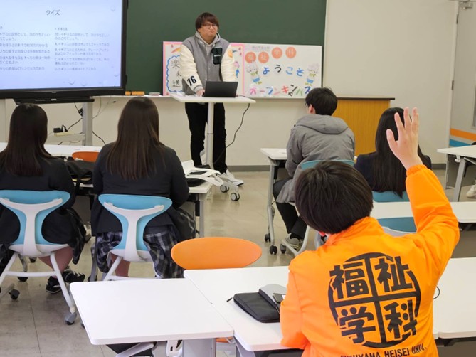 3月15日(土)、春のオープン・キャンパスが開催されました!福祉学科では、まず、教員による学科紹介、入試説明がありました。入試説明では特に指定校推薦型入試について、実際、指定校推薦型を利用して入学した先輩から入試対策について詳しく説明がありました。また、学生による学生生活の紹介があり、大学での勉学と学生生活の両立について教えてくれました。