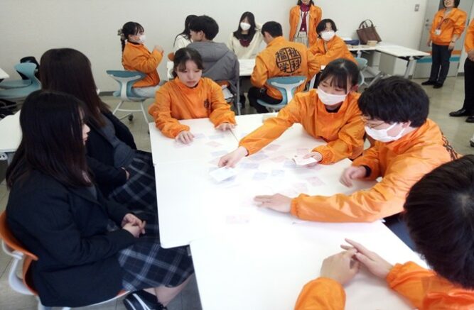 最後に、FUKUSHI ASOBI の体験では、福祉マーク神経衰弱と、介護かるたで遊びながら、福祉について学ぶことが出来ました。高校生のみなさんや親御さんも、大学生とすぐに打ち解けることができ、楽しい時間になりました。ご参加頂いた皆様、ありがとうございました。