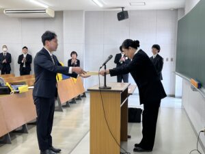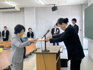 永井純子研究科長からは、「わからないことを更に研究し明らかにしてほしい」「いつでも福山平成大学をたずねてくればよい」と激励の言葉がありました。