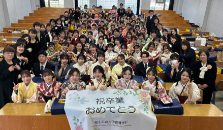 令和7年3月21日(金)、福山平成大学学位記授与式が挙行され、学部生80名、大学院看護学研究科生2名、および助産学専攻科生9名が出席しました。学科別の式典では、木宮学部長、田村学科長・研究科長、永田助産学専攻科長より、心温まる祝辞をいただきました。