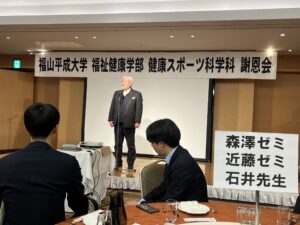 最後にゼミごとに壇上に上がり、ゼミでの思い出を語ったり、ゼミ担に感謝の意が伝えられたりしました。
