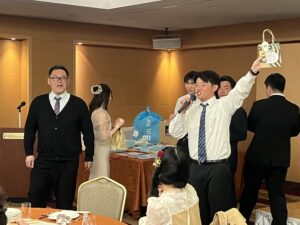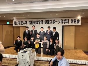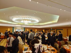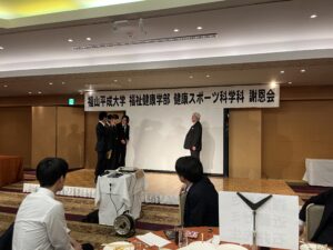 学位記授与式の後、学生たちが主催する謝恩会がニューキャッスルホテルで開催されました。石橋学科長の挨拶のあと、歓談やビンゴゲームで盛り上がりました。