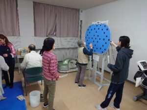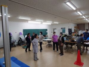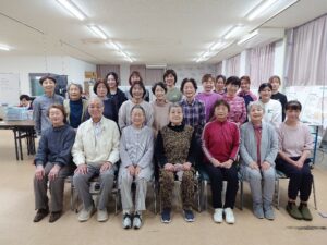 参加者からは、『この冬は寒くて家にいることが多くて、運動不足だったの。やっぱり結果にも現れているわね。』『私、もう少しで90歳だけど、この柔軟性よ。』と、立った姿勢から床に手をつける(立位体前屈)を学生たちに披露してくださったりと、盛り上がる測定会となりました。