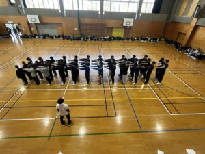 最初はバラバラであった列も、リーダーが細やかにサポートや指導をし約2時間の練習を経てみんな上達していきました。
