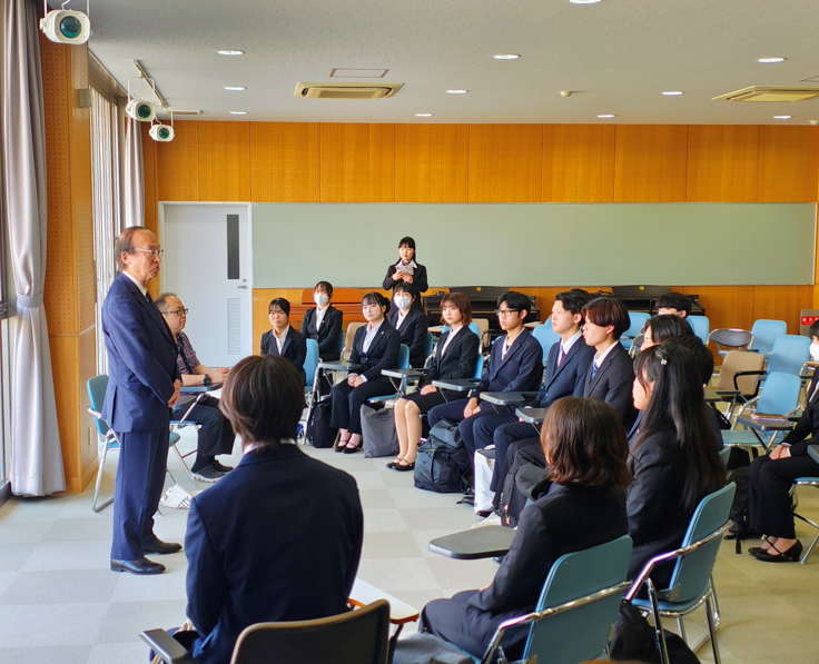 冨士 彰夫学長からもお言葉をいただき、皆さん真剣に話を聞いています。