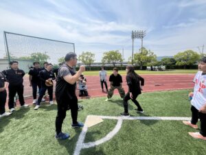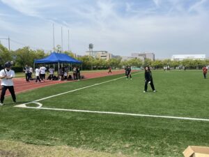 学生達とともに交流を深めながらハッスルプレーが続出し、見事1勝することができました。
