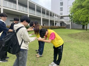 本日は、朝と昼の時間帯に、マナー向上キャンペーンが行われ、健康スポーツ科学科の学生たちも参加しました。