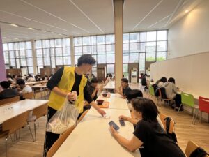 ティッシュの配付は昼時のため、食堂でも行われていました。