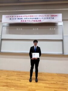 経営学科3年生のベトナム人留学生チャン・タイン・フーンさんが、中国語のスピーチコンテスト「漢語橋」世界大学生中国語コンテスト日本予選の西日本ブロック大会に参加しました。