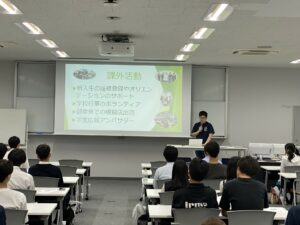 その後、在学生3名から、学生生活についてプレゼンテーションがありました。