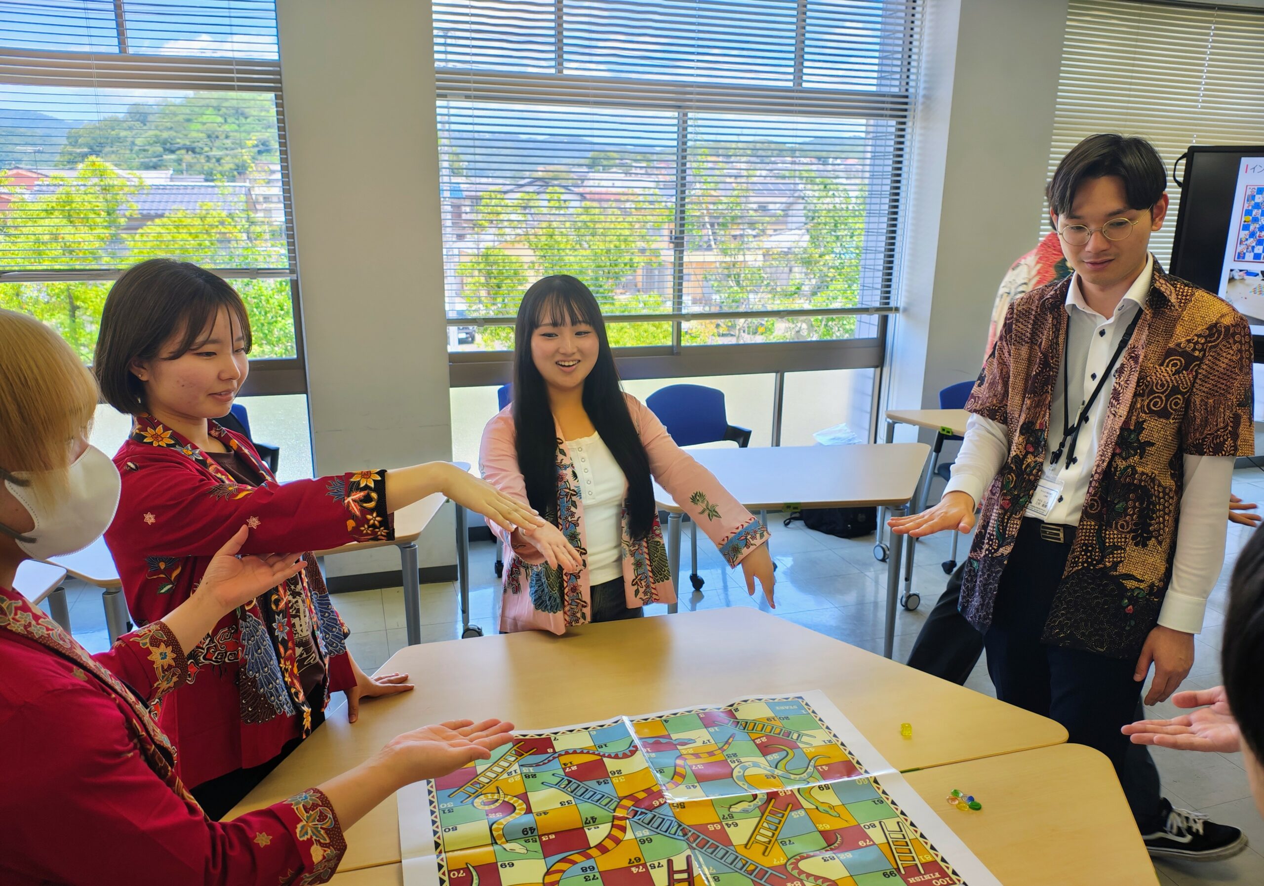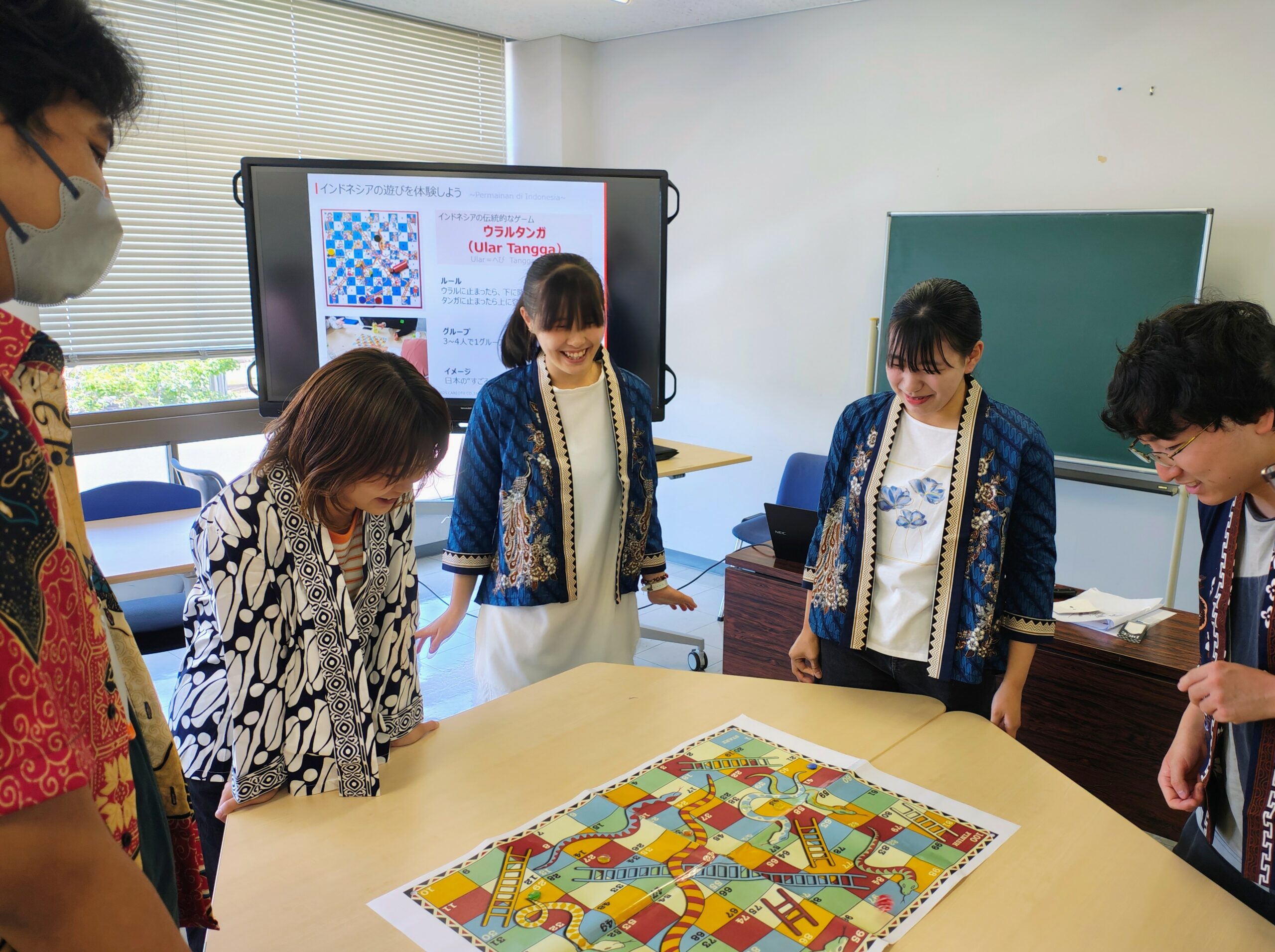 その後、インドネシアの伝統的な遊びである「ウラルタンガ」も実践しました。この伝統的な遊びは日本の「すごろく」によく似たゲームで、参加した学生もすぐに馴染め、大変盛り上がりました。