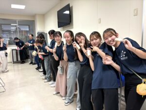 オープンキャンパスが終わって充実感一杯の学生スタッフのみんな。