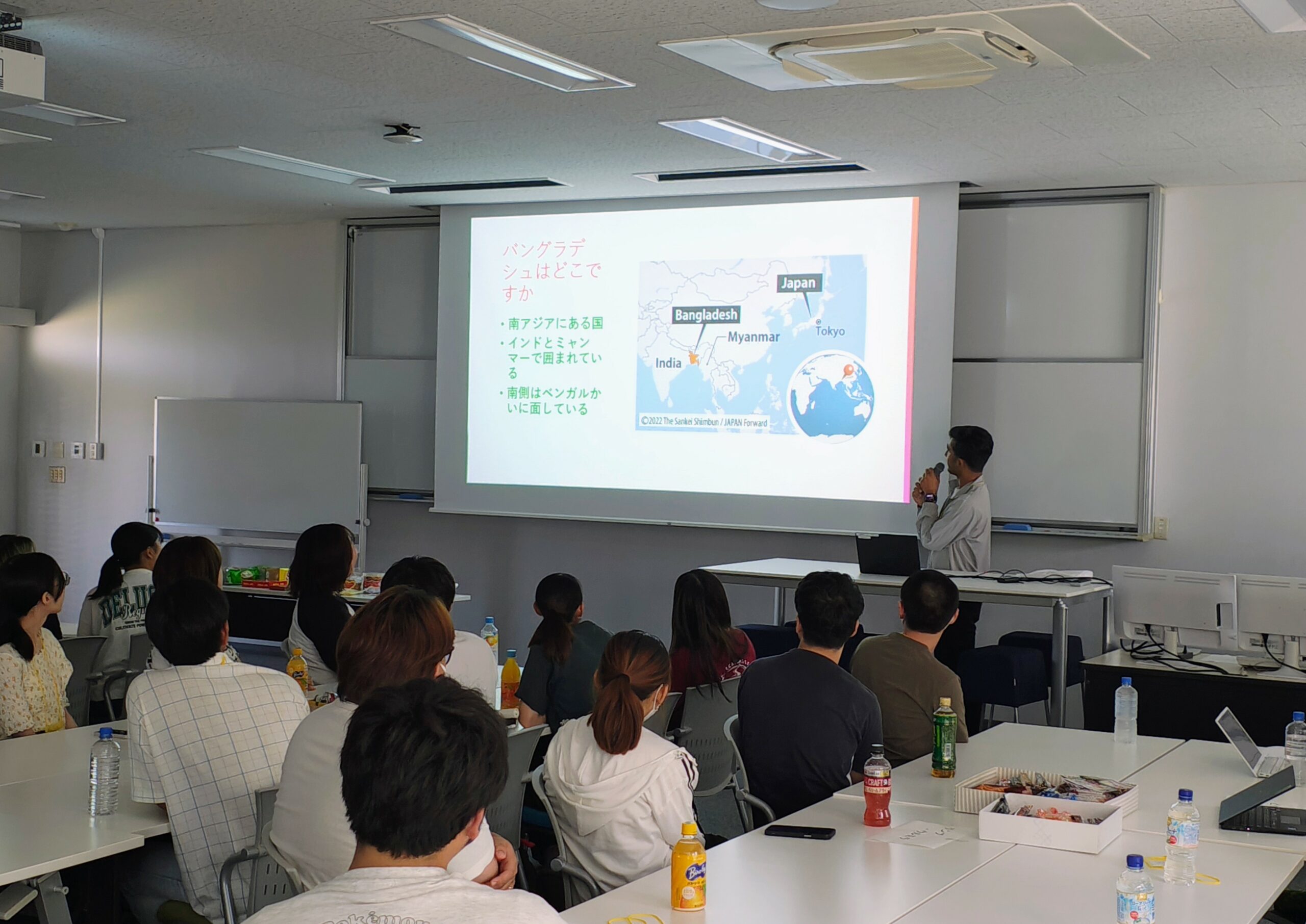 バングラディッシュ留学生の母国に関する話やベトナム、中国、ネパール各国の母国語教室、グローバルクイズなどの後、日本人学生らは留学生たちと歓談しました。国籍や学科の垣根を越えて素晴らしい交流の機会を楽しんでいました。