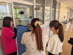 先日、学生たちは神石高原町にある放課後等デイサービス施設「夢門塾」へ見学に伺いました。