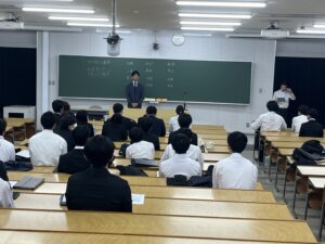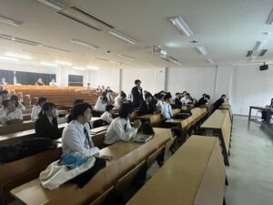 健康スポーツ科学科では、7月12日(土)に卒業論文中間発表会を実施しました。最初に、4年生は一堂に会し、高本健彦学科長から激励の言葉をうけました。