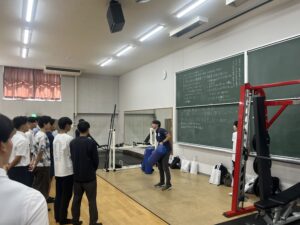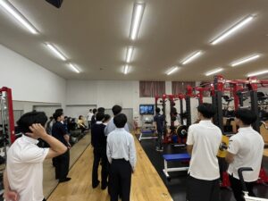 石井智紋助教と、桑野淳一郎助手が模擬授業を行って「体力の見える化体験」が実施されました。