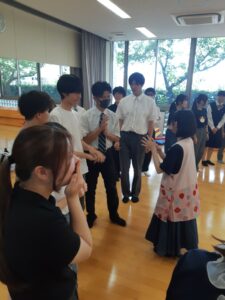 最後に、「先輩たちと仲良くなろう」という学生スタッフの企画で交流会を実施。小学校の先生を目指す学生が授業科目に関するクイズを出したり、保育士・幼稚園の先生を目指す学生がバースデーチェーンを行ったりして、高校生の参加者と交流を深めました。