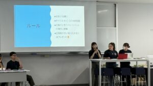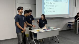 前半は、学生スタッフの皆さんが考案した、経営学の知識を肩ひじの張らない形で学べるアクティヴィティでした。