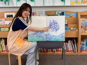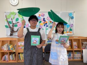 福山北特別支援学校は、学校図書館をリニューアルされるなど、読書指導に力を入れていらっしゃいます。学生たちが訪問すると、毎回たくさんの児童生徒の皆さんが図書館に集まり、季節に合わせた絵本の世界を一緒に楽しんでくれます。
