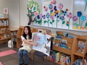 7月9日には第3回の活動を実施しました。今年の梅雨明けは早く、暑い日が続いていることから、涼しさの感じられる海や船の絵本を読むことにしました。高等部と中学部の生徒を対象とした会では、「なつのいちにち」「ふねくんのたび」「うらしまたろう」を読んで「うみ」を歌いました。小学部の児童を対象とした回では、「ありとすいか」「ふねくんのたび」「たなばたバス」を読んで「うみ」を歌いました。「たなばたバス」では、児童のみなさんも腕をぐるぐる回してバスくんを応援してくださり、たいへん盛り上がる読み聞かせ会となりました。