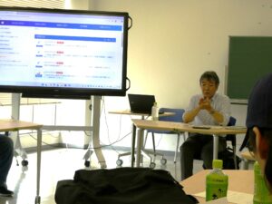 3年生が受講するゼミナールⅠで7月16日、公益財団法人ひろしま産業振興機構の鳥越福山支所長と学生の交流会が行われました。
