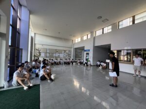 開会式では高本学科長からの挨拶のあと、バスに乗り込み、大学を出発しました!今回は4年生や大学院生7名がスタッフとして参加して運営をサポートしてくれました。