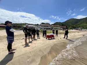 今年の遠泳は、島根県松江市美保関町の北浦海岸で行われました。