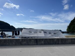 10時半ごろに現地に到着し、 浜にテントをたてて準備完了です。