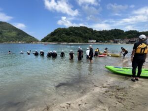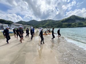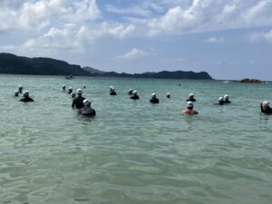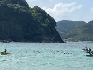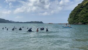 臨海実習(遠泳)が8月6日から8日にかけて、島根県松江市美保関町の北浦海岸で行われました。実習2日目のご報告です!