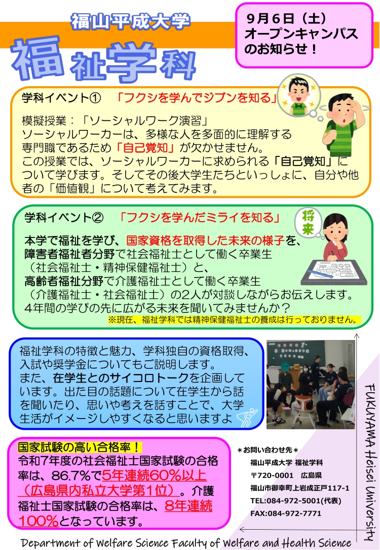【福祉学科】 9月6日(土) オープンキャンパスのご案内