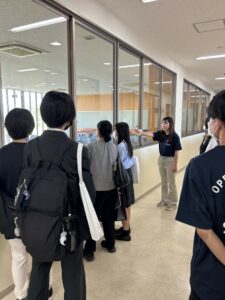 当日は、学生スタッフがこども学科棟の各教室をご案内し、専門的な設備の紹介を交えながら、普段どのような授業が行われているかを具体的に説明しました。
