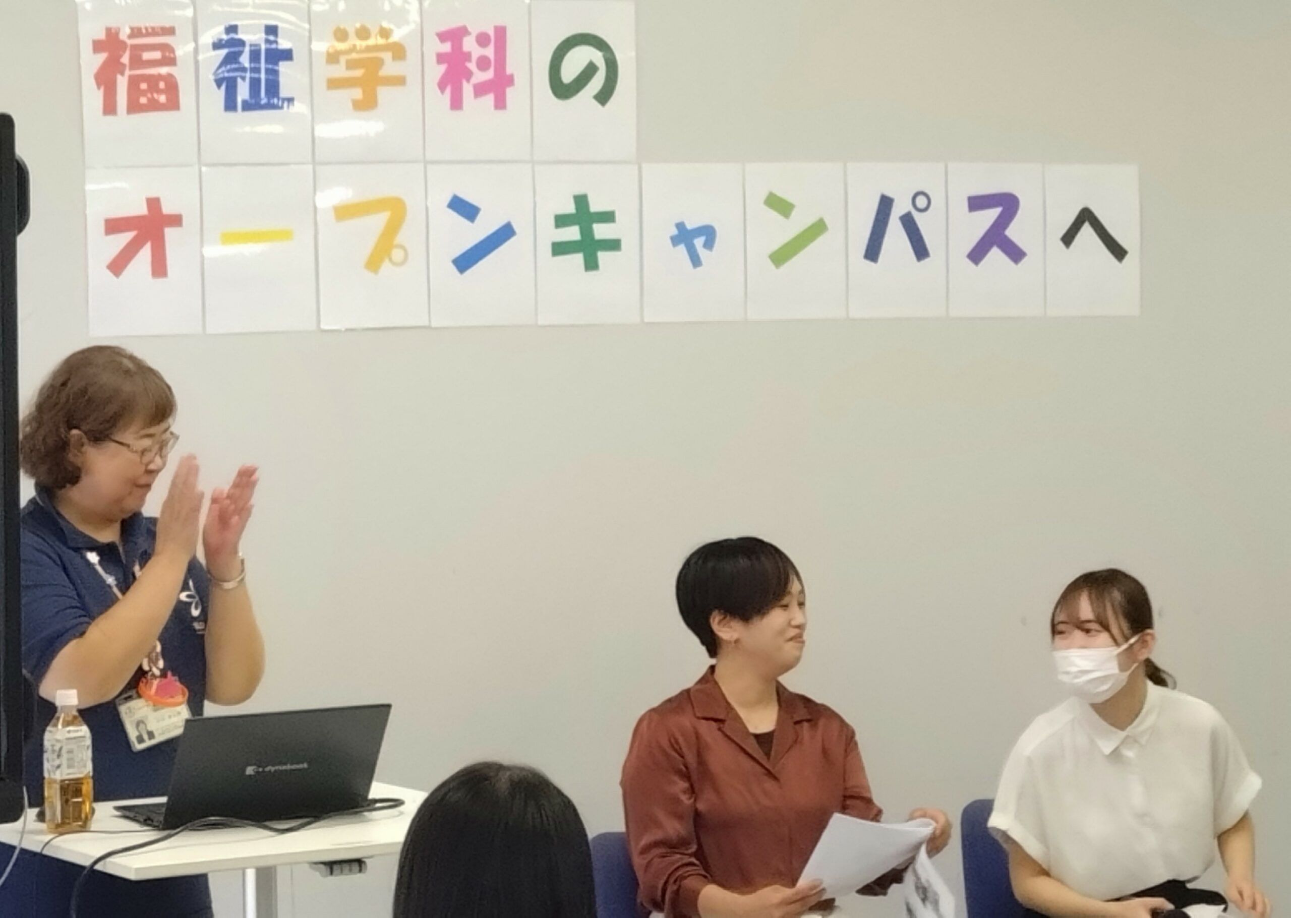 オープンキャンパスは少し先になりますので、福祉学科をもっと知りたい方は、10月18・19日(土日)の御幸祭に遊びに来てください。お待ちしています。