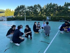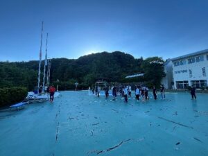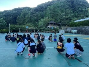 健康スポーツ科学科では、9月1日~3日にかけて、愛媛県の大洲青少年交流の家をベースキャンプとして肱川での実習をおこないました。大洲青少年 の家では朝と夕に集いが行われますが、夕べの集いではレクレーションを楽しみました。