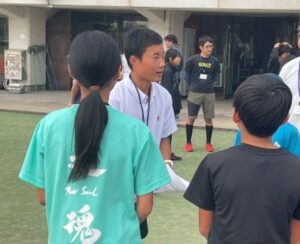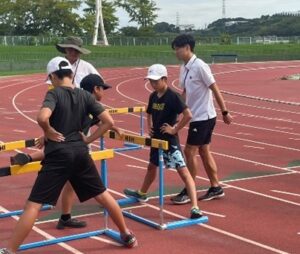学生は、子どもたちを前にしての先生役を務めることが初めてだったこともあり、子どもたちが喜んでくれるためには何をすればよいのか悩み、柴山准教授にアドバイスをもらい、緊張感をもって当日を迎えました。陸上教室が始まり、子どもたちの笑顔をみて学生はほっとしたようです。学生にとって、「スポーツを教える」という実践的な経験を積める貴重な機会になりました。陸上教室へ参加して頂きました皆様、どうも有難うございました。
